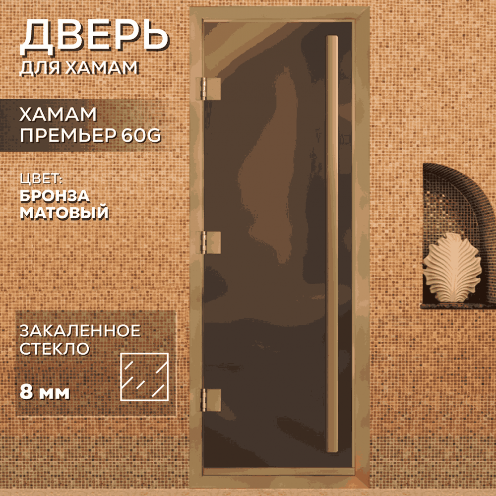 Дверь для хаммама АРТА Премьер 60G – отличное решение для помещений с повышенной влажностью (турецкой парной, душевой, бассейна), где пластик не выдерживает высокую температуру, а дерево разбухает и гниет от влаги. Все дверные полотна изготовлены из надёжного закаленного стекла 8 мм, благодаря применяемым технологиям это стекло абсолютно безопасно. Коробка выполнена из анодированного алюминиевого профиля, а специальный магнитный уплотнитель позволяет мягко и плотно закрываться двери даже если на нее попала вода.Предусмотрен порог, предохраняющий от протечки воды в соседние помещения, зазор для вентиляции в нижней части двери. В комплектации предусмотрена вертикальная ручка.