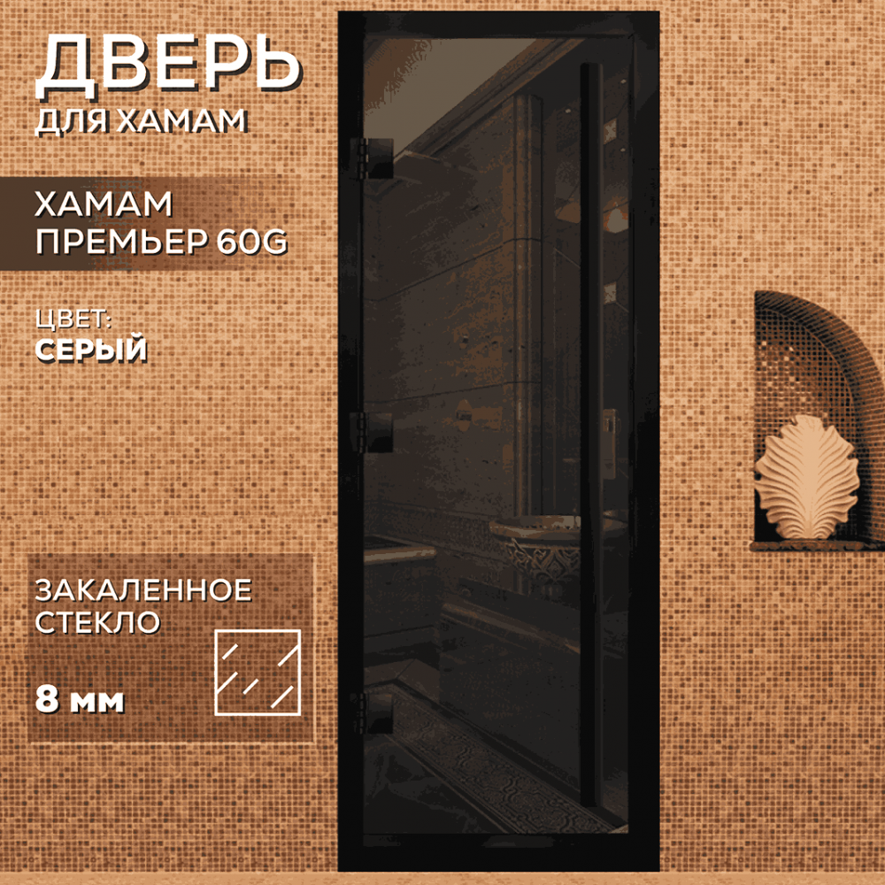 Дверь для хаммама АРТА Премьер 60G – отличное решение для помещений с повышенной влажностью (турецкой парной, душевой, бассейна), где пластик не выдерживает высокую температуру, а дерево разбухает и гниет от влаги. Все дверные полотна изготовлены из надёжного закаленного стекла 8 мм, благодаря применяемым технологиям это стекло абсолютно безопасно. Коробка выполнена из анодированного алюминиевого профиля, а специальный магнитный уплотнитель позволяет мягко и плотно закрываться двери даже если на нее попала вода.Предусмотрен порог, предохраняющий от протечки воды в соседние помещения, зазор для вентиляции в нижней части двери. В комплектации предусмотрена вертикальная ручка.