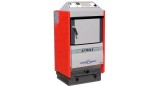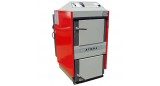 - Твердотопливные котлы Atmos работающие на угле изготавливаются из жаропрочной нержавеющей стали толщиной 3-6 мм, благодаря чему конструкция безотказно работает в условиях высоких температур. В таких котлах в качестве горючего так же можно использовать древесные поленья до 35 сантиметров в длину. Угольные котлы укомплектованы системой первичной и вторичной подачи воздуха, а так же вытяжным вентилятором. Мощность такого пиролизного оборудования составляет до 26 киловатт.