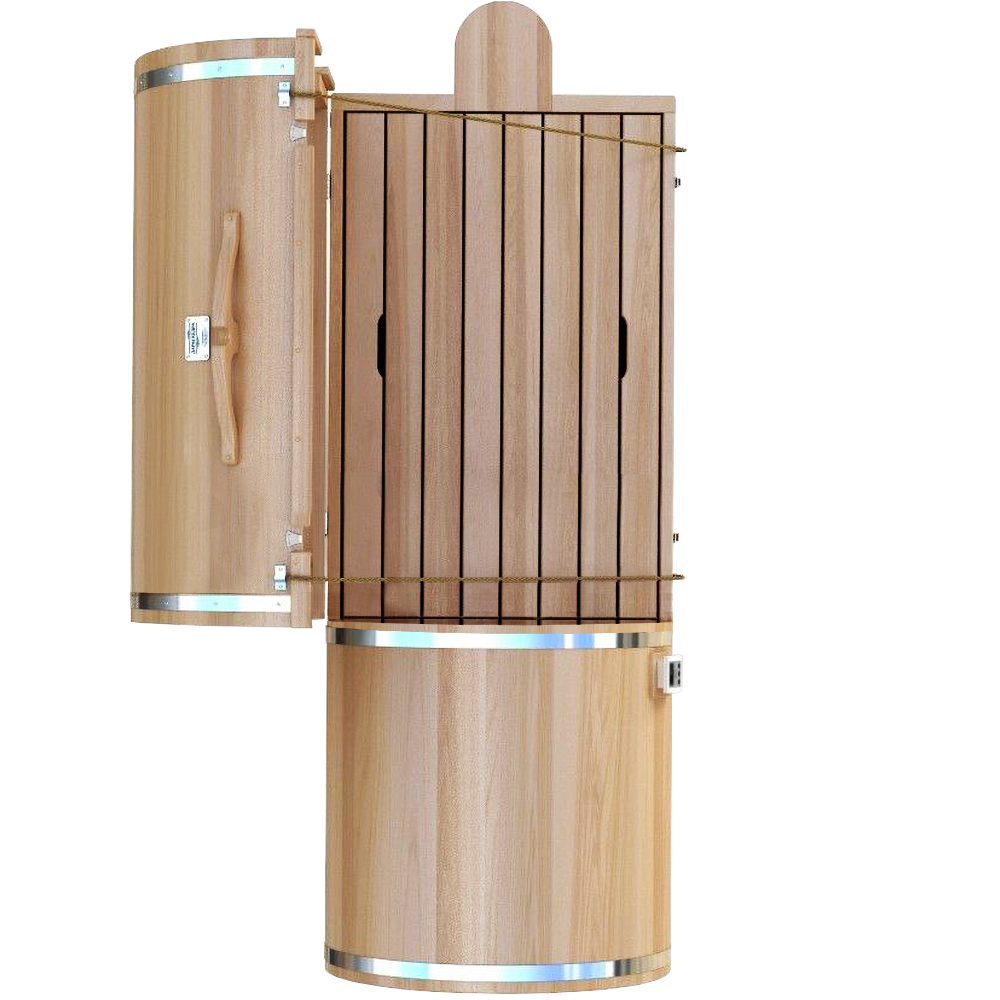 Более продвинутая модель кедровой бочки (фитобочки). Универсальное решение, совмещает в себе фитобочку и инфракрасную сауну.