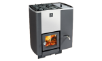 Если же у вас печь-каменка с выносной топкой выходит прямо в комнату отдыха, то возможно Вам подойдет печь с большим панорамным стеклом. Это добавит мягкого света от живого огня, и Вы получите незабываемые впечатления от посещения бани или сауны. Только помните – такие стекла необходимо с внутренней стороны периодически чистить. Такие дровяные печи с выносной топкой и панорамным стеклом (Например Harvia Legend 240 DUO или ProMetall Атмосфера L) стоят дороже чем обычные, но если Вы хотите получить самый лучший эффект от посещения бани – то это Ваш выбор!