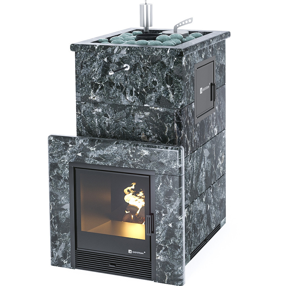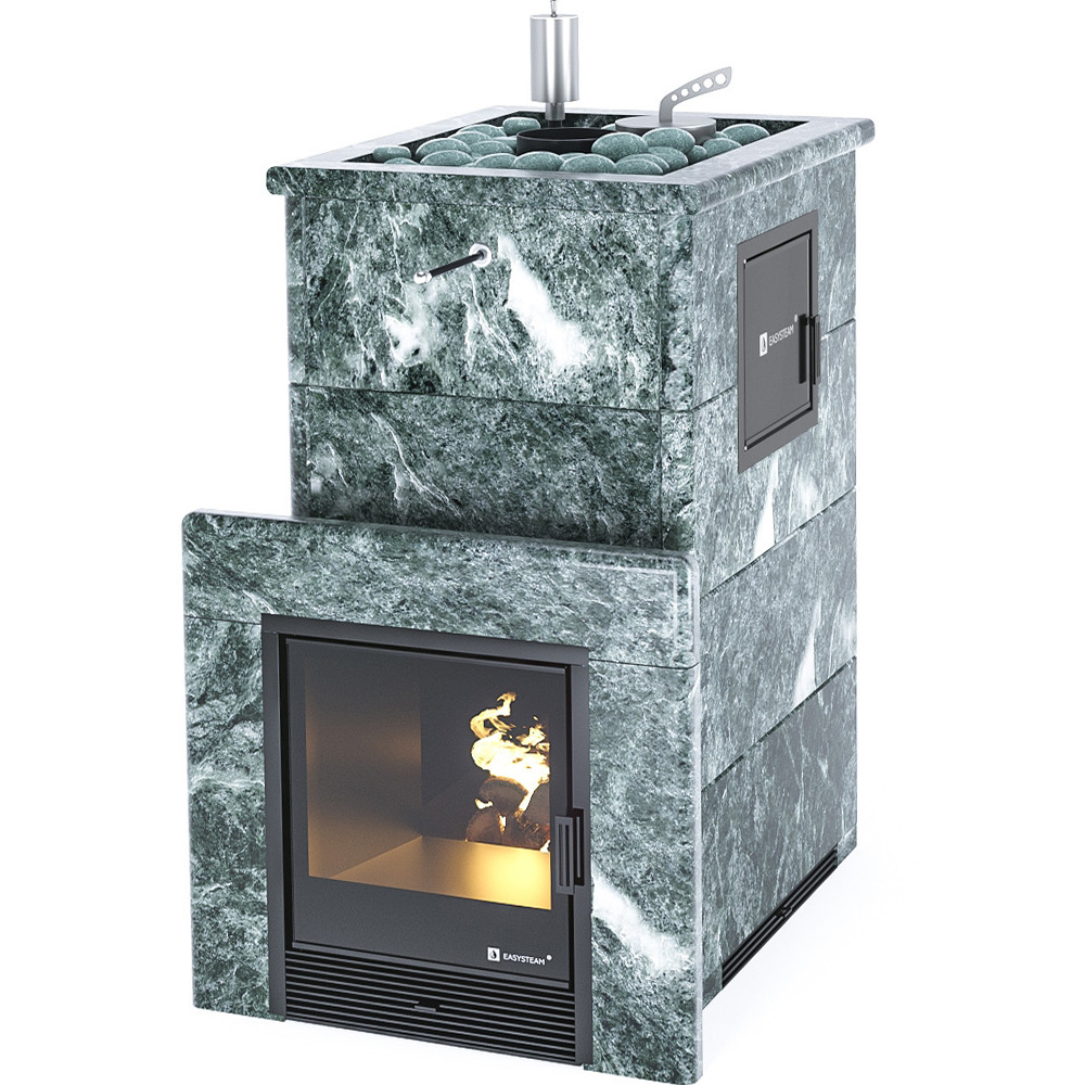 Закрытая каменка позволяет разогреть камни до высоких температур 500-600 градусов, а встроенный парогенератор обеспечивает попадание пароводяной смеси на нижний самый разогретый слой камней, и на выходе получить качественный мелкодисперсный лёгкий пар.