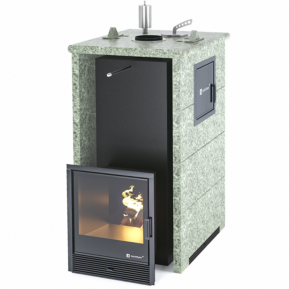 Закрытая каменка позволяет разогреть камни до высоких температур 500-600 градусов, а встроенный парогенератор обеспечивает попадание пароводяной смеси на нижний самый разогретый слой камней, и на выходе получить качественный мелкодисперсный лёгкий пар.