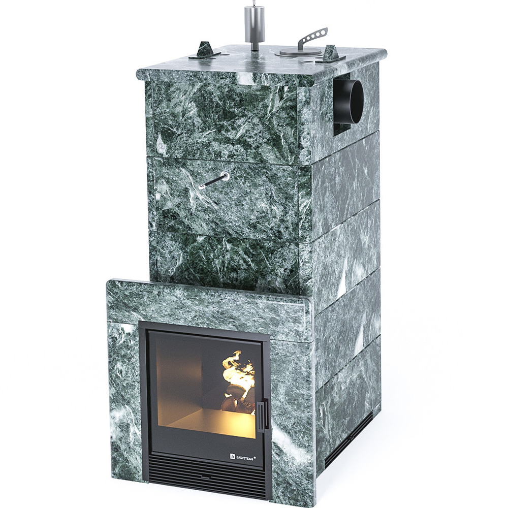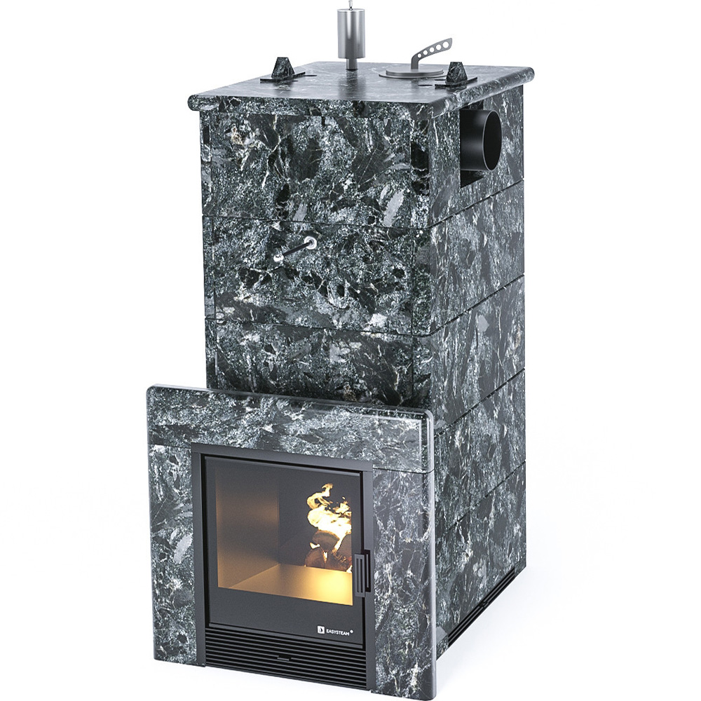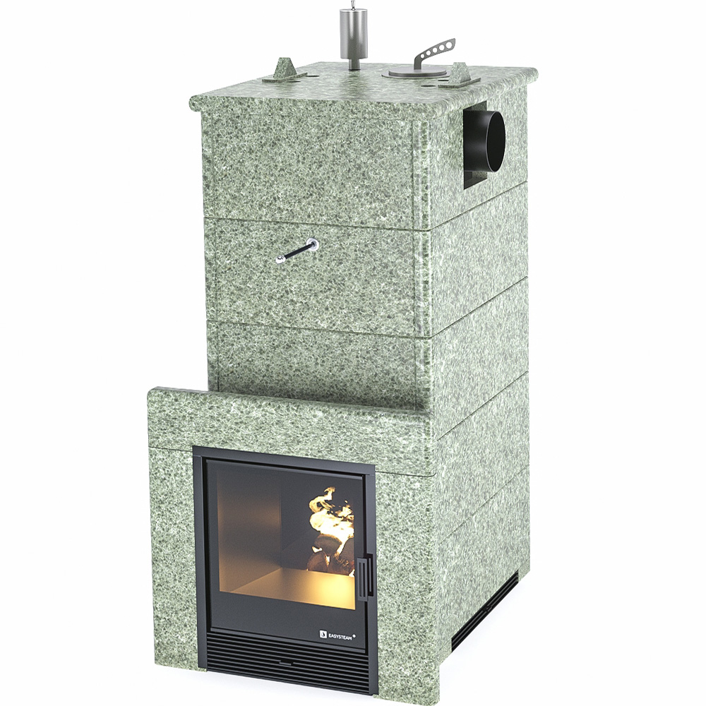 Закрытая каменка позволяет разогреть камни до высоких температур 500-600 градусов, а встроенный парогенератор обеспечивает попадание пароводяной смеси на нижний самый разогретый слой камней, и на выходе получить качественный мелкодисперсный лёгкий пар.