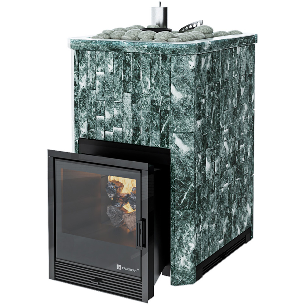 Закрытая каменка позволяет разогреть камни до высоких температур 500-600 градусов, а встроенный парогенератор обеспечивает попадание пароводяной смеси на нижний самый разогретый слой камней, и на выходе получить качественный мелкодисперсный лёгкий пар.
