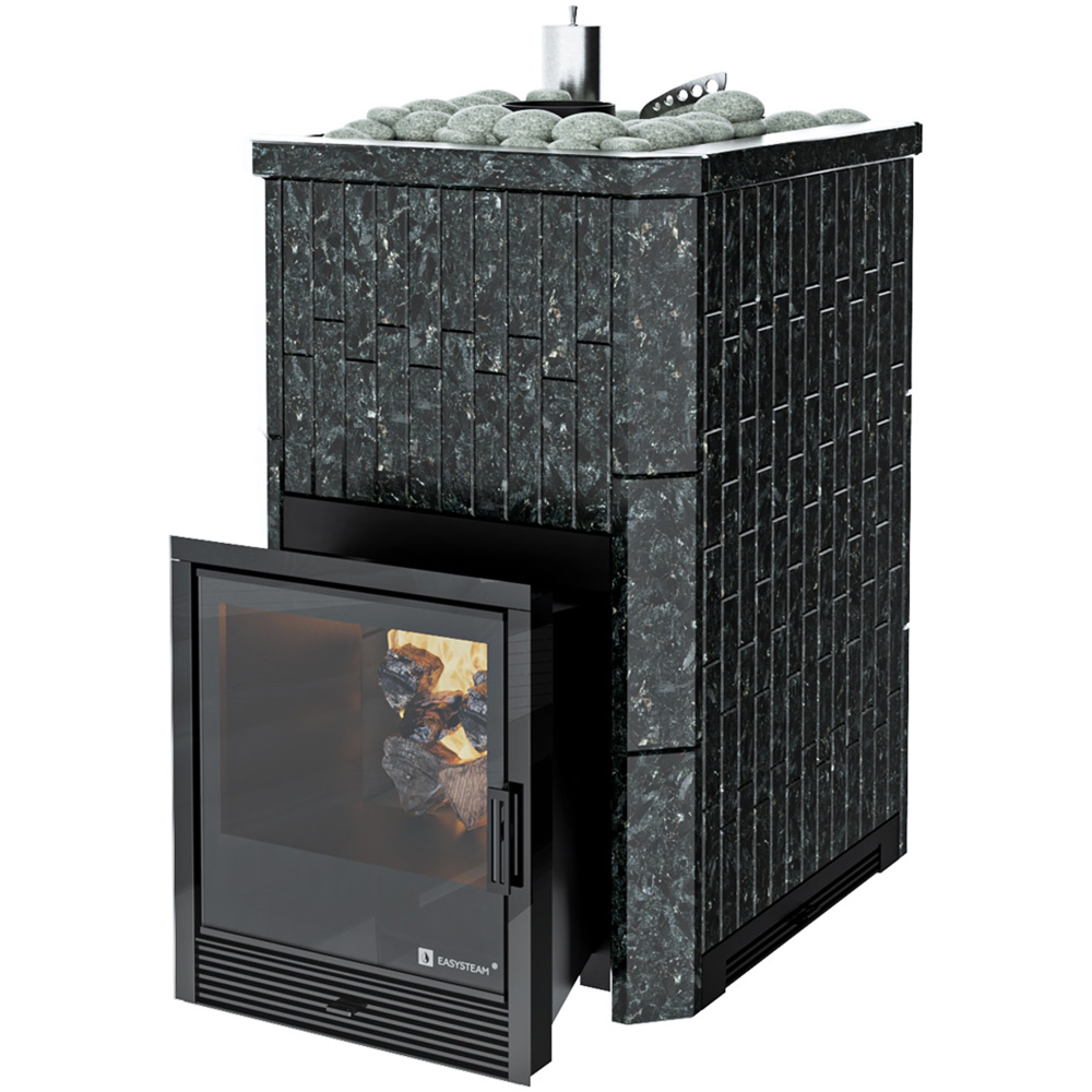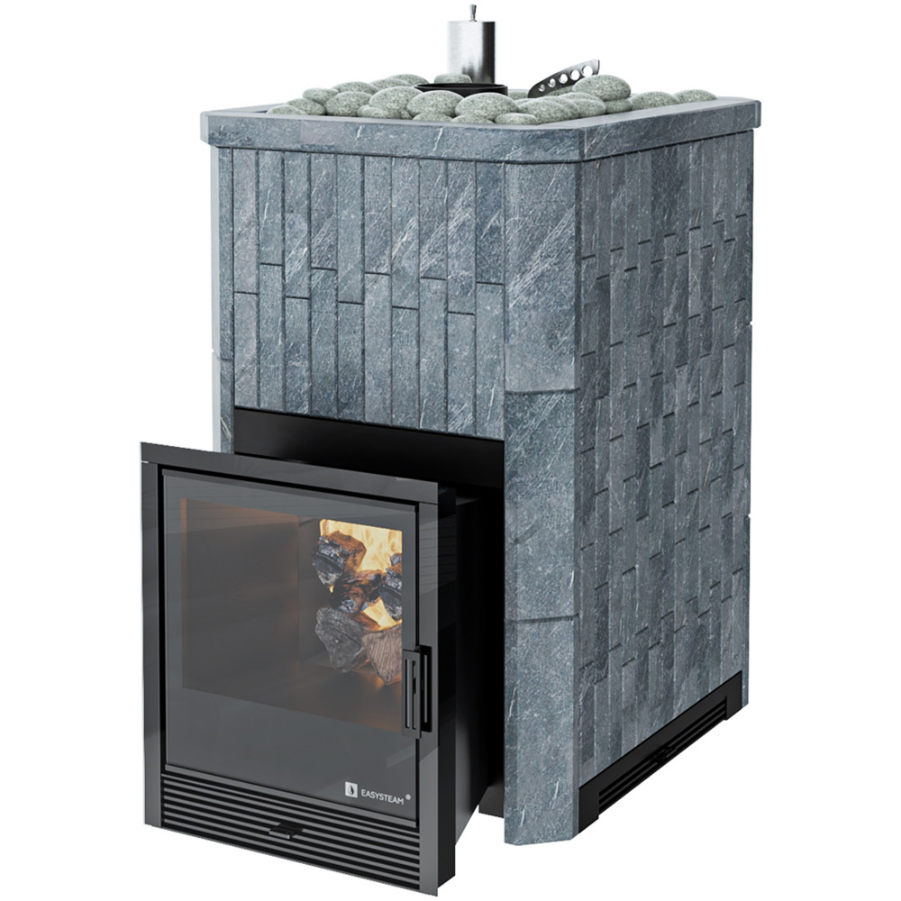 Печь «Южная 16» в кожухе из природного камня для небольших парных объёмом до 16 м3.