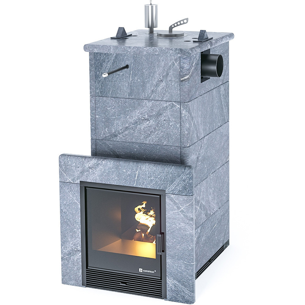 Закрытая каменка позволяет разогреть камни до высоких температур 600 градусов, а встроенный парогенератор обеспечивает попадание пароводяной смеси на нижний самый разогретый слой камней, и на выходе получить качественный мелкодисперсный лёгкий пар.