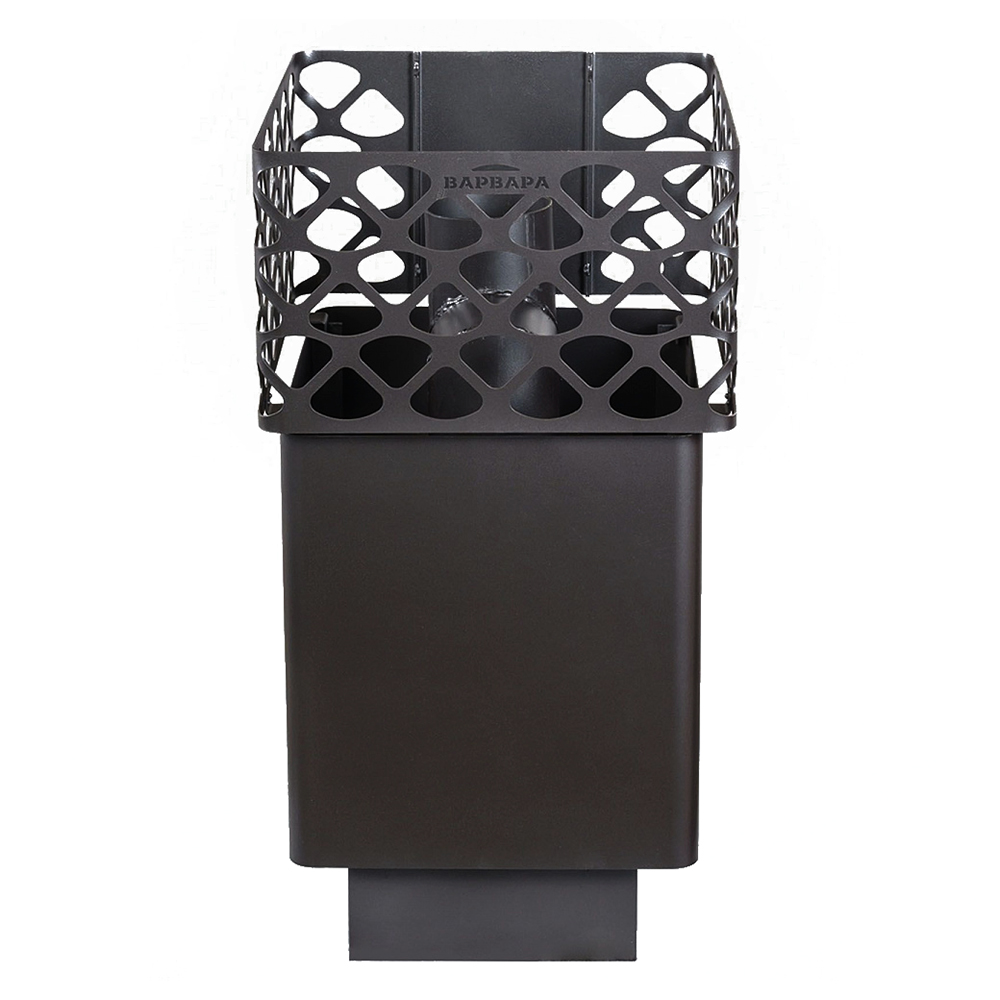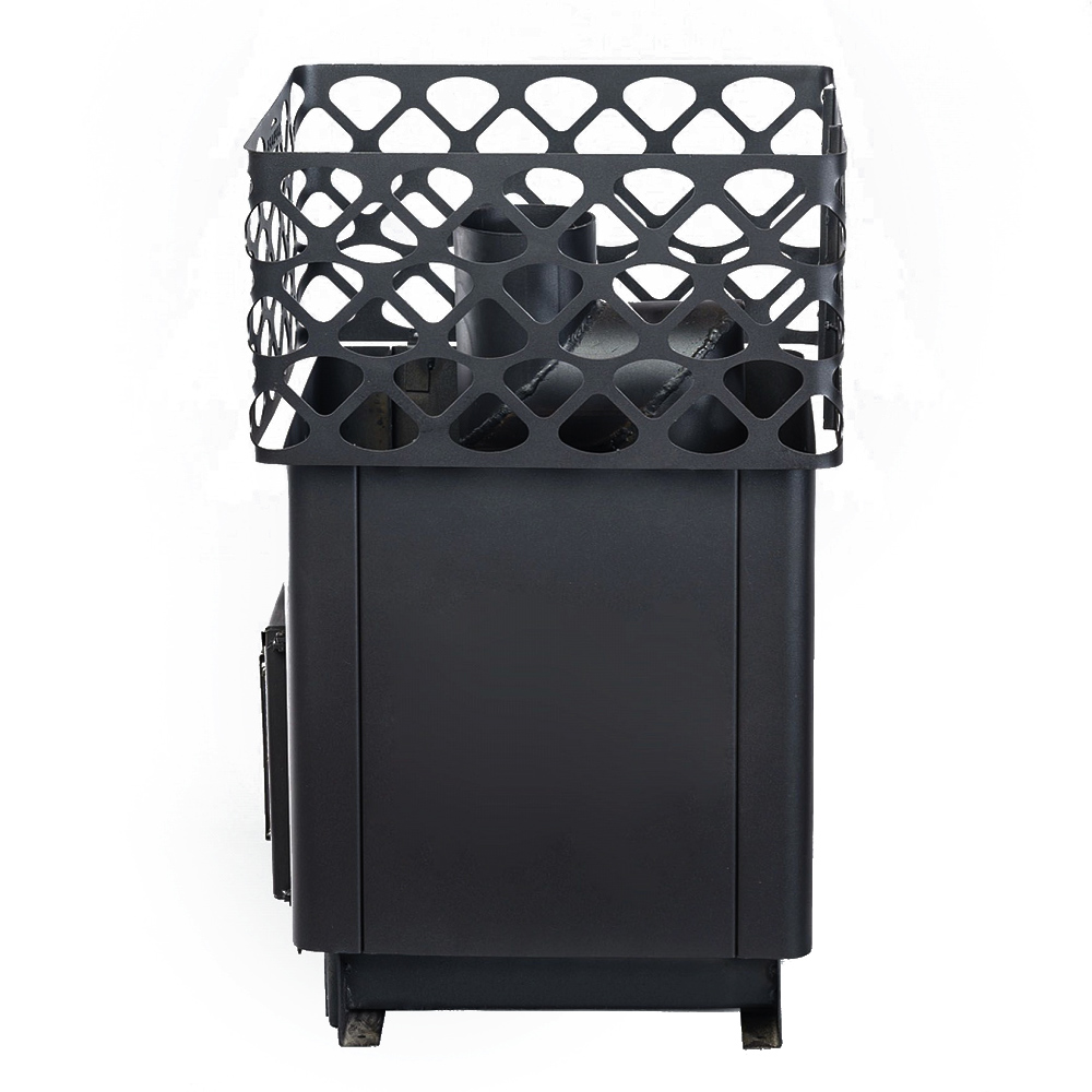 Печь "Теремок" для парных с объемом от 6 до 10 куб. метров с оригинальным сеточным кожухом для закладки камнем без выносного топочного тоннеля (топится непосредственно в помещении парилки) и дверцей со стеклом.