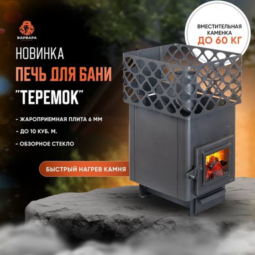Печь Теремок поможет вам избавиться от такой проблемы, как маленькая площадь парной, т. к. имеет компактные габариты!Варвара Теремок сочетает в себе привлекательный внешний вид и эффективную конвекционную печь, способную за короткое время прогреть помещение, а большой объем каменки данной модели позволяет длительное время удерживать накопленное тепло, при этом экономичный расход дров приятно удивляет.