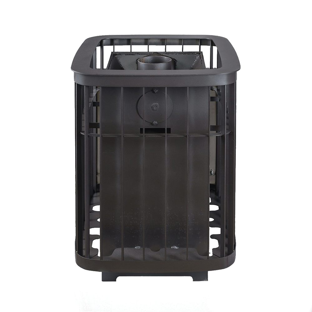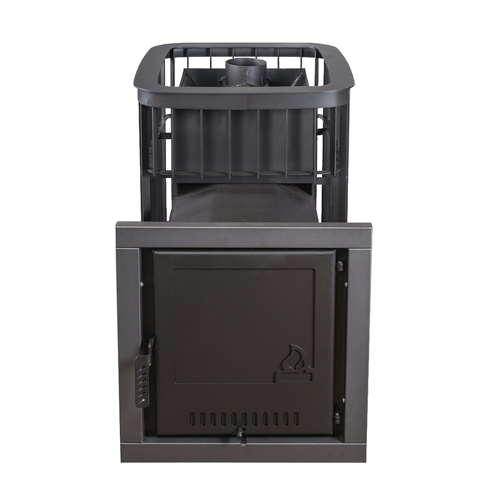 Топка и зольный ящик изготовлены из стального проката, усиленные в участках подверженных наибольшей деформации гибкой. Рядом с отсеком для закладки камня находится патрубок для подключения дымохода.
