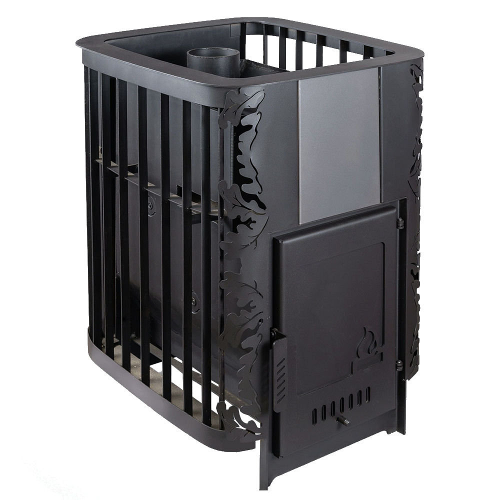 Печь "Каменка" для парных с объемом от 12 до 24 куб. метров с сетчатым кожухом для закладки камнем без выносного топочного тоннеля (топится непосредственно в помещении парилки) комплектуется дверцей с глухой пластиной вместо стекла.
