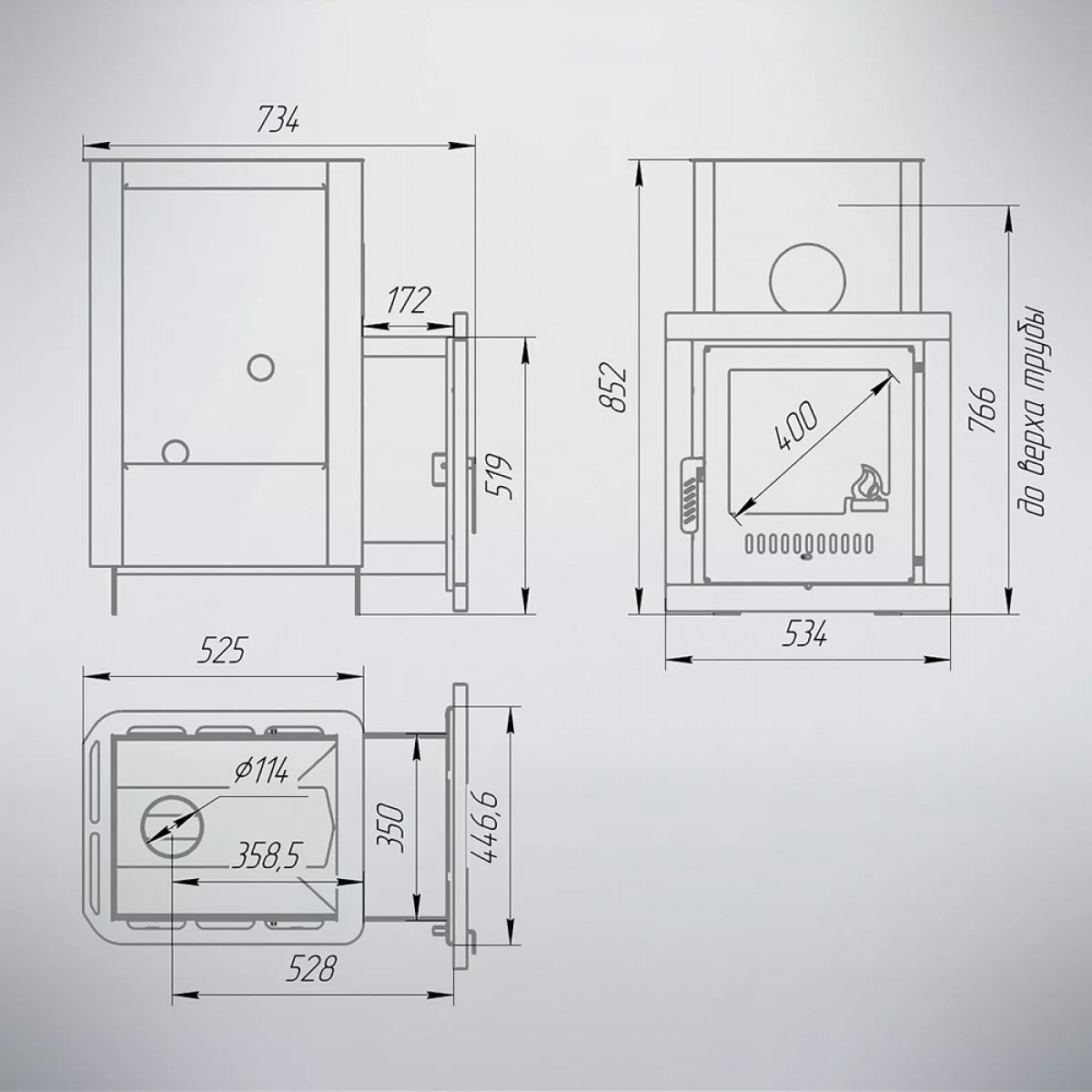 Универсальность модели позволяет в любой момент установить на печь элементы для нагрева воды (бак) с требуемой стороны.