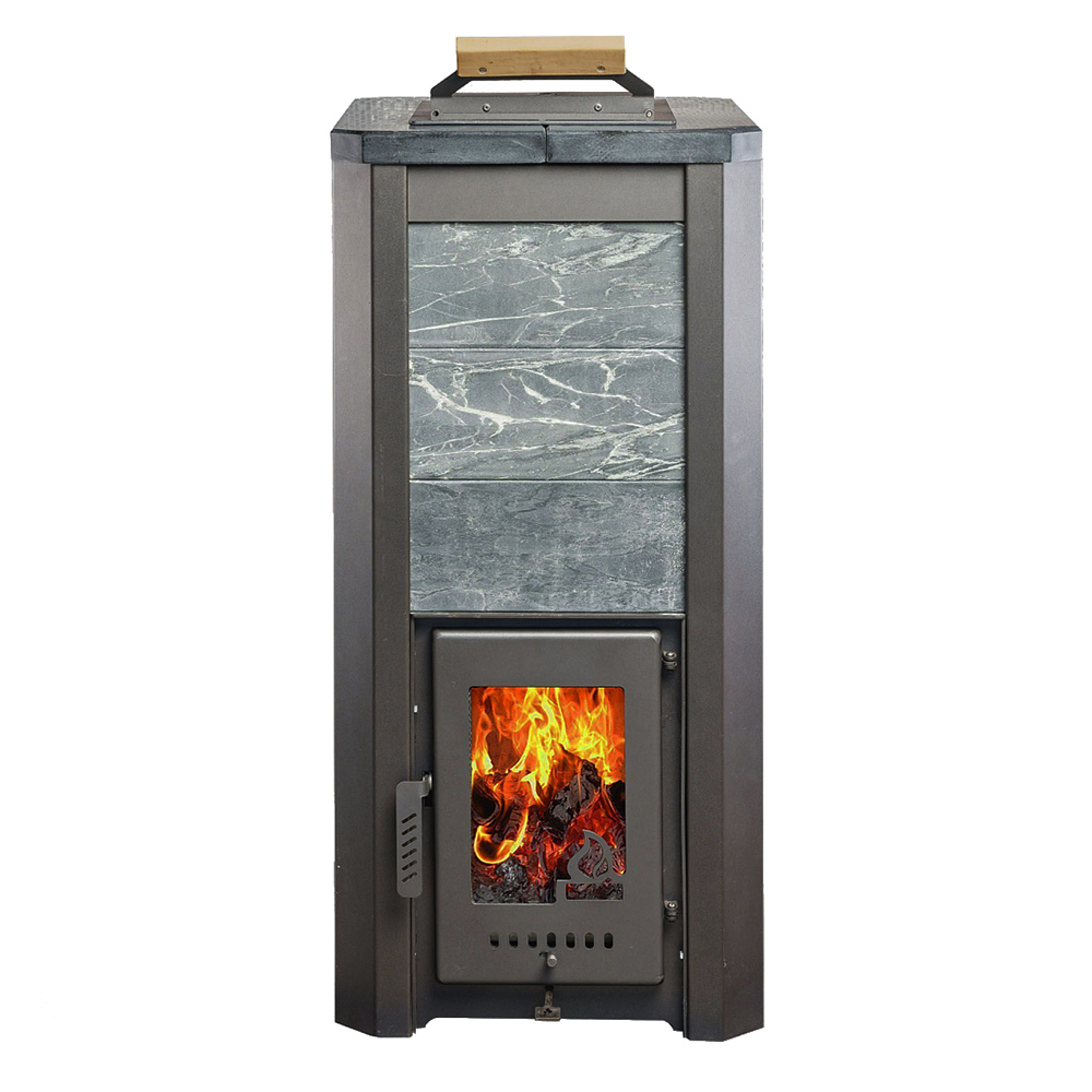 Внутренняя закрытая каменка с распределением воды прогревается с пяти сторон, обеспечивая интенсивный прогрев заклада и способна создать достаточное количество мелкодисперсного пара для русской бани. В случае поддержания горения в печи "перезарядка" камней происходит быстро, что способствует образованию качественного пара. Во время прогрева парной конвекционные решетки с регулировкой, расположенные справа и слева под крышкой открыты - быстрый нагрев. Когда набралась нужная температура - закрыты, тогда нагрев будет более мягкий от камня облицовки.