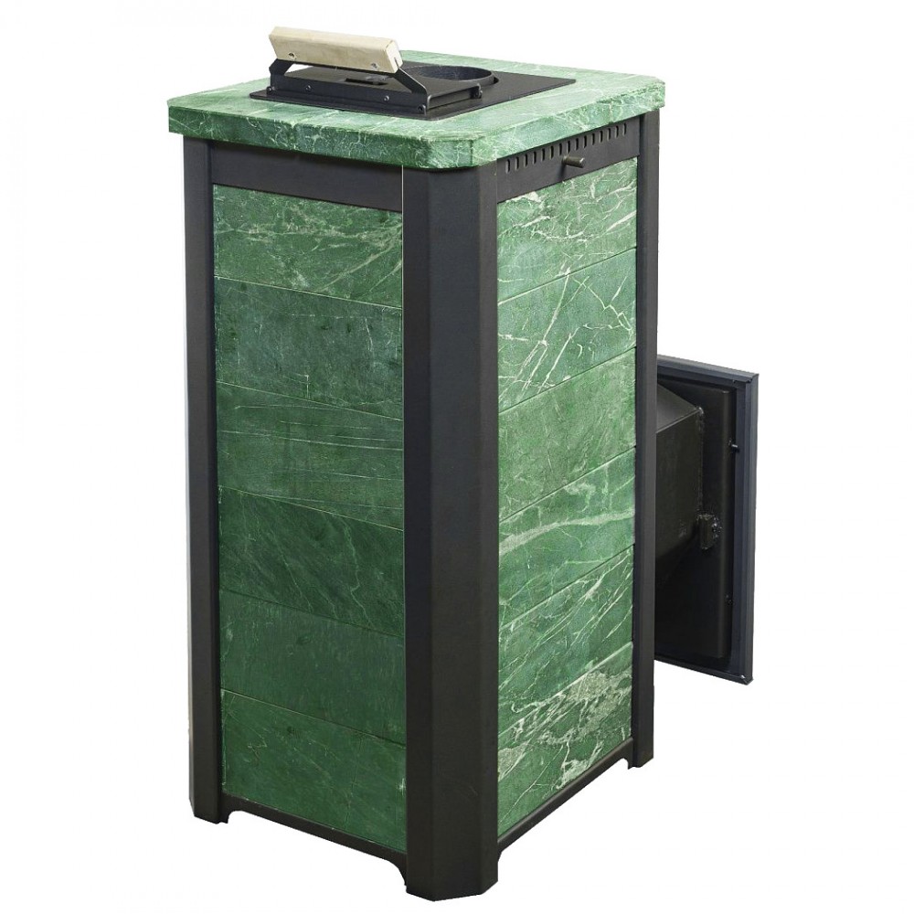 Камень в закрытой каменке нагревается до более высокой температуры, чем в открытой каменке. Это позволяет получить мягкий мелкодисперсный пар. Камень закладывается в специальный карман с дверцей, находящийся внутри печи.