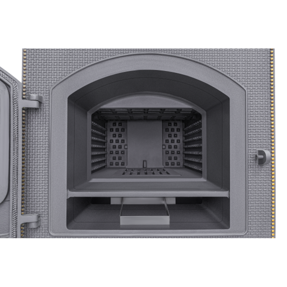 При производстве печи мы используем несколько видов жаропрочного чугуна, в том числе с содержанием хрома до 5%. Состав для каждой детали подобран с учетом термической нагруженности элементов печи. Благодаря этому печь Гром обладает высокой прочностью и надежностью.