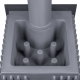 Теплосъемные шипы, со стороны горения пламени, в разы увеличивают площадь соприкосновения огня с каменкой и ускоряют передачу тепла, а также способствуют лучшему дожигу смешивая потоки пламени и воздуха поступаемого из воздушника.