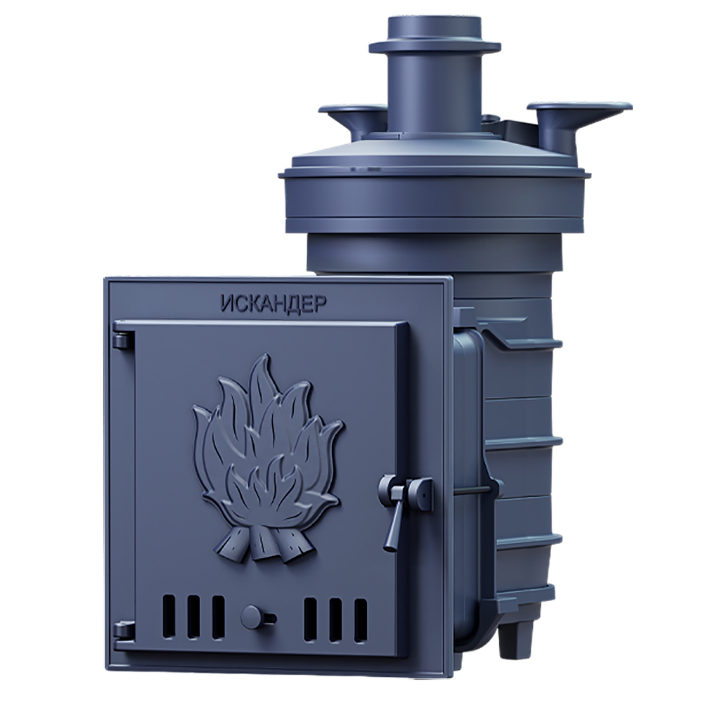 Опционально печи Искандер могут доукомплектовываться модулем увеличения объёма камеры сгорания (максимум 1 модуль) и наборным кольцом увеличения объёма каменки (максимум 2 кольца).