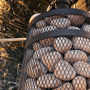 Печь «Искандер» рассчитана на использование с защитным кожухом-сеткой из стали с последующей засыпкой камнями. Камни в сетку следует закладывать в 1 слой между корпусом печи и сеткой. Камни должны быть крупной фракции для возможности циркуляции воздуха между ними.