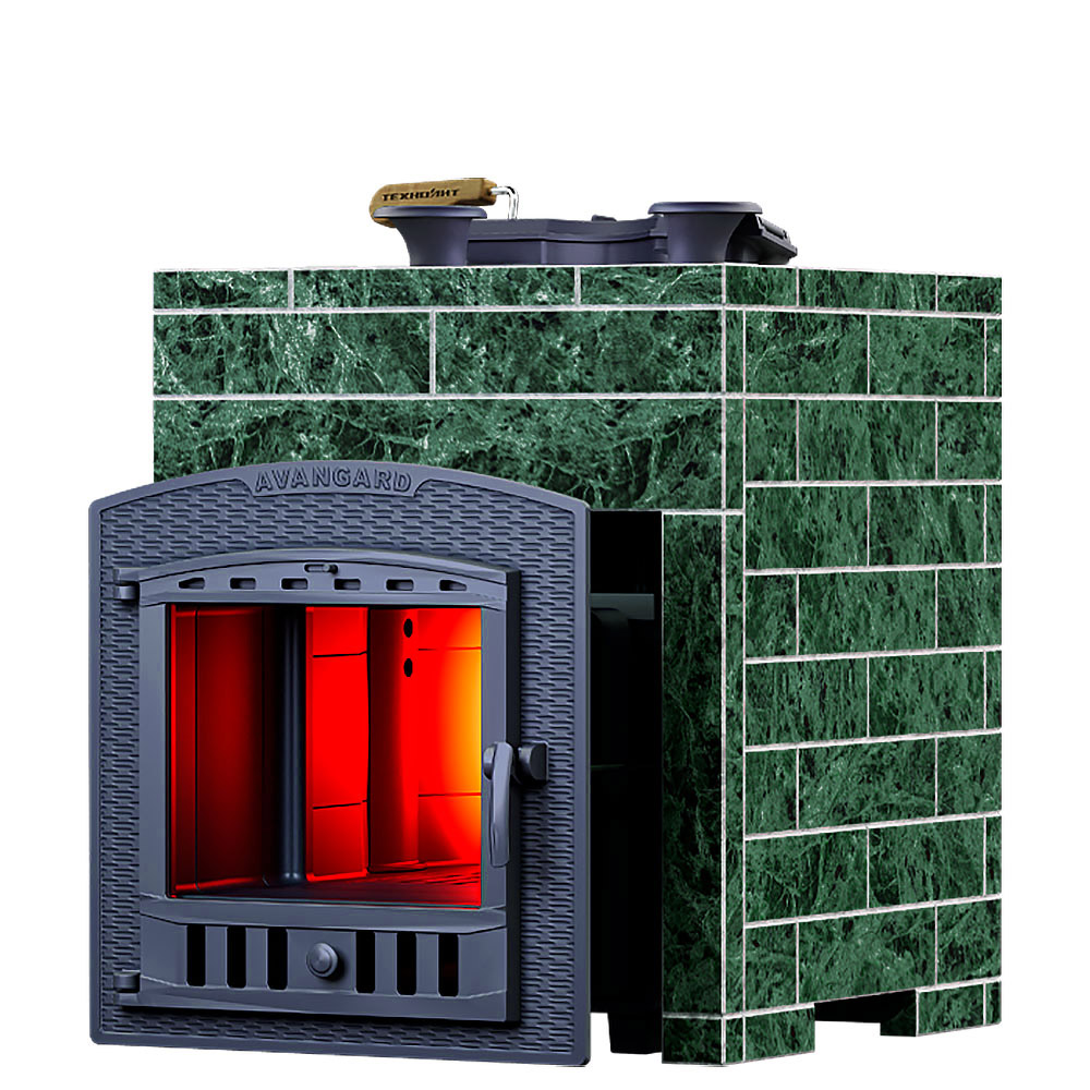 Модификация "Авангард ЗК" - это печь "Авангард" с закрытой каменкой, двумя паровыми пушками и дверцей для залповой подачи пара. Печь Авангард ЗК 25 в комплекте с облицовкой для русской парной, имеющий непосредственно закрытую чугунным коробом каменку, дверцу для пара с ручкой из бука, увеличенную до 50 см чугунную стартовую трубу.