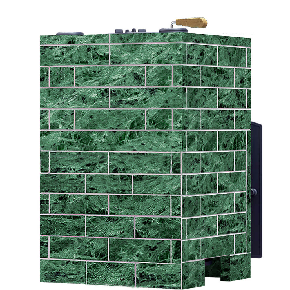 Облицовка формы «Классика» из кирпичиков змеевика - это простой и эффективный способ создать режим русской бани. Облицовка представляет собой плитки зелёного камня с краями, обработанными фаской. Из-за этих краёв облицовка имеет чёткий рисунок, который полностью имитирует настоящую кирпичную кладку. Эта облицовка также, как и облицовка из классического кирпича, останавливает жёсткое инфракрасное излучение и конвекцию, легко собирается/разбирается и не требует никаких специальных навыков при сборке.