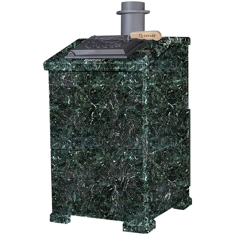 Чугунная Банная Печь «Гефест GFS ЗК 25П2 Президент 1000/50 Серпентинит» с панорамным стеклом в облицовке Серпентинит