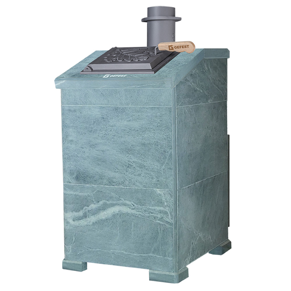 Чугунная Банная Печь «ГефестГром 30П2 Президент Талькомагнезит» с панорамным стеклом в облицовке Талькомагнезит