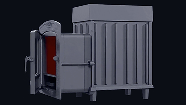 Корпус печи разборный, модули соединяются по пазогребневой системе. Печь полностью выполнена из легированного чугуна марок ЧХ1, ЧХ2, ЧХ3.