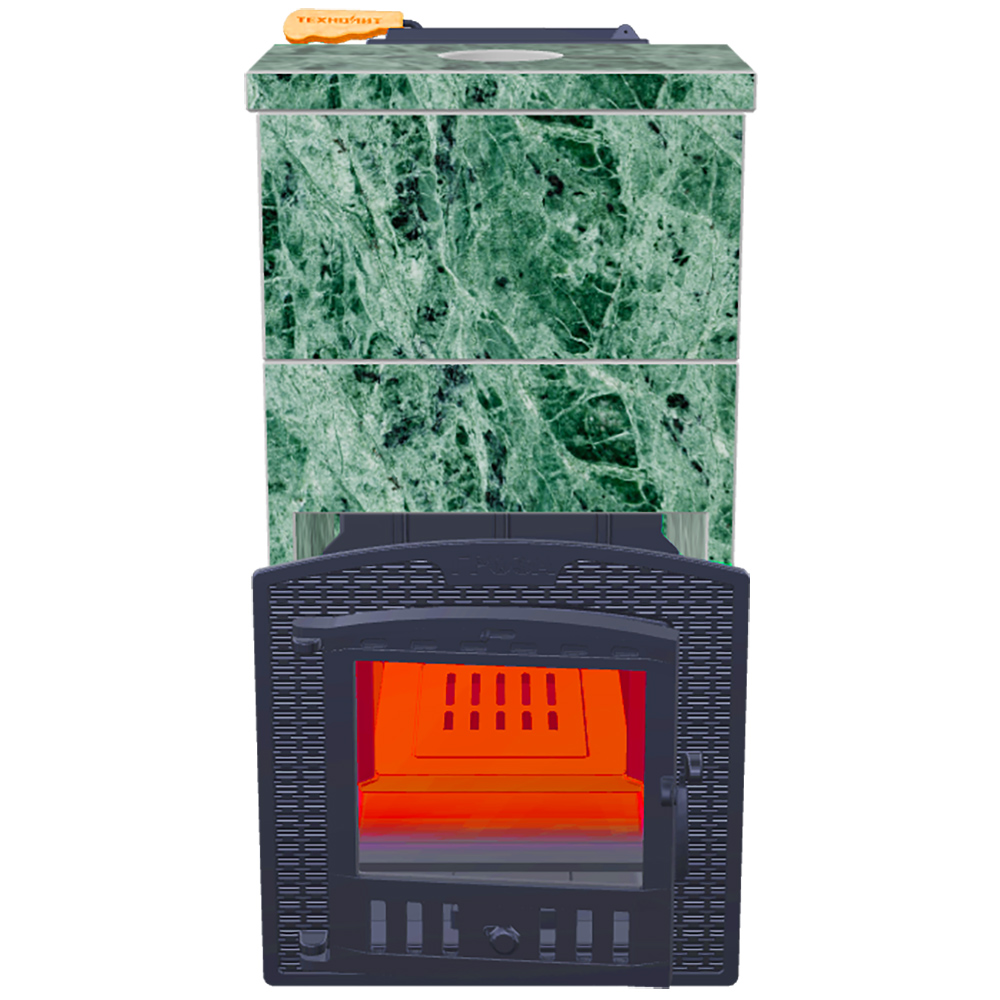 Печь Гроза 18 облицовке Классика 850/40 из натурального камня змеевик и стеклом в дверце для парных объемом до 18 м. куб. Чугунная банная печь «Гроза» предназначена для отопления парного помещения и генерации мелкодисперсного пара. Вокруг печи - каменная обкладка, которая послужит защитным ограждением и увеличит теплоёмкость банной печи. В комплекте чугунный короб для установки на каменку. Внутренняя каменка вместимостью до 30 кг.