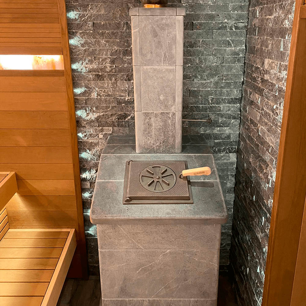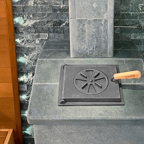 наполняет парную лучевым теплом от тёплого натурального камня, закрывая жесткий тепловой нагрев от чугунной топки;