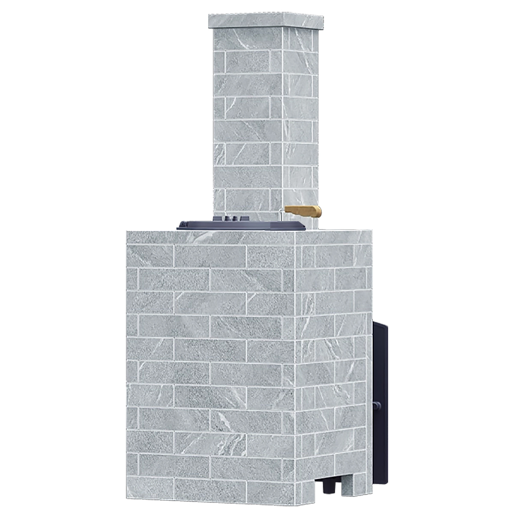 Талькохлорит – это плотный, прочный и термически устойчивый горный камень, идеально подходящий для изготовления облицовки. Прекрасно накапливает тепло и имеет красивый внешний вид. Его цвет неоднородный, а включает в себя всю палитру серого цвета с мелкими вкраплениями желтого и зеленого. Облицовка представляет собой кирпичики талькохлорита с краями, обработанными фаской. Печь в такой облицовке дарит приятное тепловое излучение, которое идеально подходит для создания режима русской бани. Облицовка для печи формы «Классика» обеспечивает весь необходимый функционал: