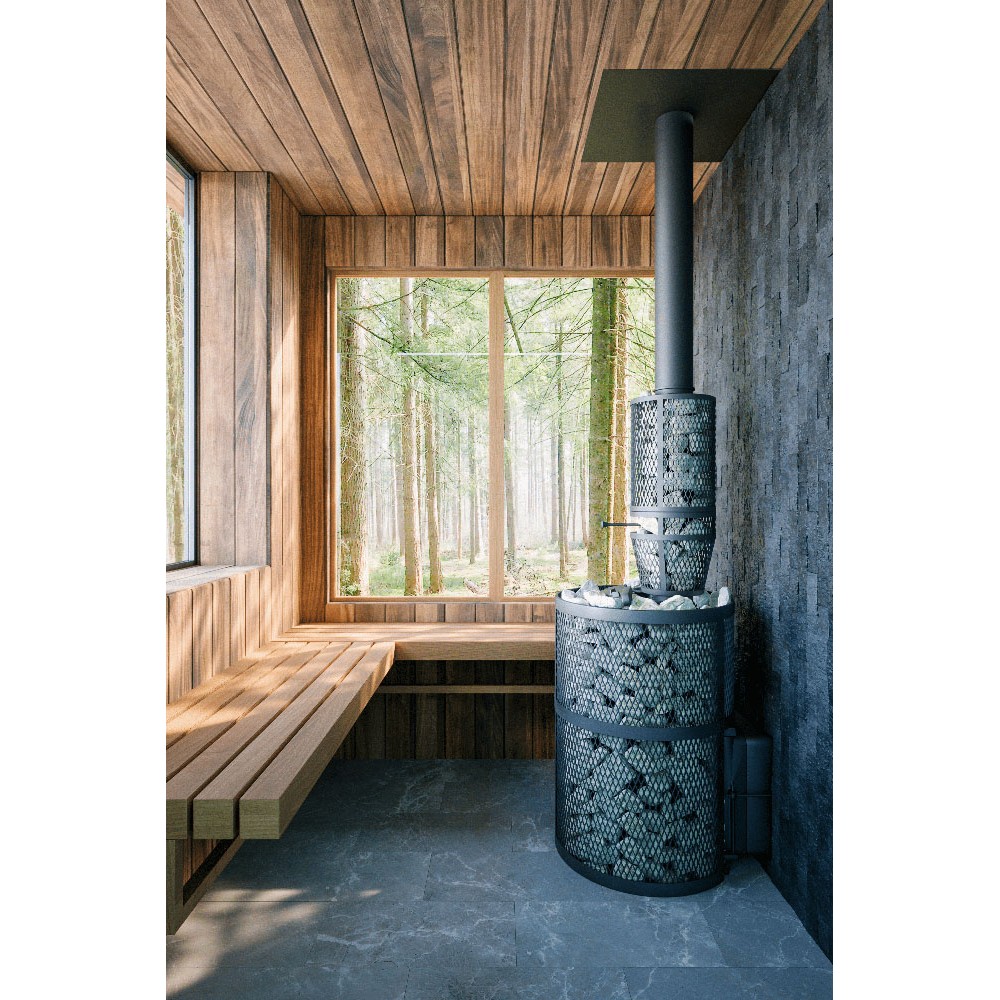 * Если в стенах или потолке сауны имеются не изолированные каменные/стеклянные или подобные поверхности, каменке потребуется больше энергии. На каждый не утепленный квадратный метр площади к объему сауны добавляется 1,2 кубических метра.
