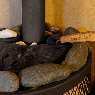 Основным парообразователем в печи Авангард является каменка прямого нагрева. С нижней стороны выполнены полые выступы, которые со всех сторон охватываются пламенем, а с верхней стороны они образуют воронки. Попадая в воронки – вода оказывается в самом раскаленном месте заряда образуя легкий мелкодисперсный пар уже через 30 мин после растопки.