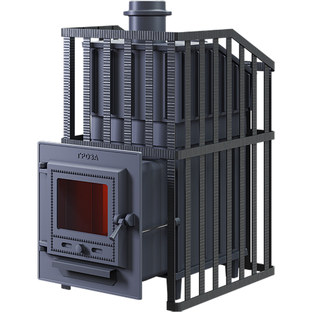 Чугунная банная печь Гроза 24М Ураган» с сеткой для камней предназначена для отопления парного помещения парных объемом до 24 м. куб. Печь используется с кожухом-сеткой с дальнейшей загрузкой камней, увеличивающую теплоёмкость и снижающую тепловое излучение. Печь рассчитана для создания паровых режимов «русская баня» в условиях индивидуального использования.