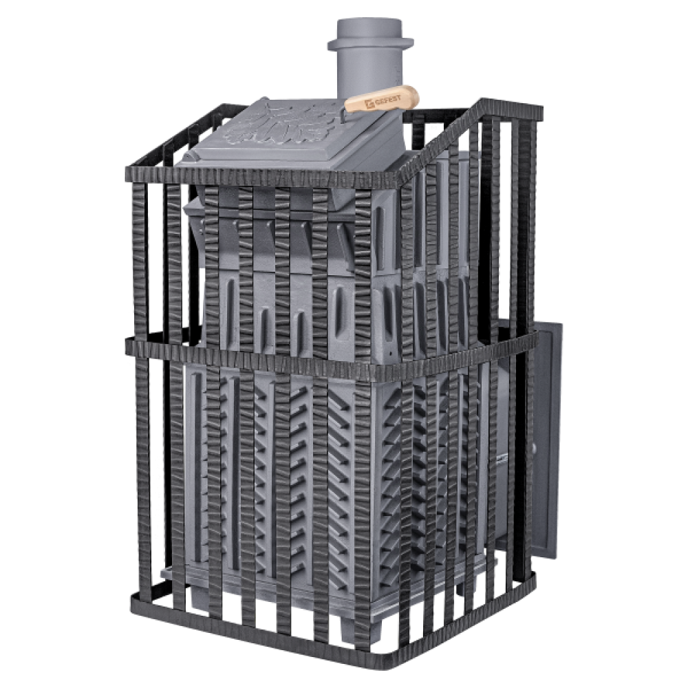 Чугунная банная печь «Гром 30П2 Ураган» с сеткой для камней предназначена для отопления парного помещения парных объемом до 30 м. куб. Печь рассчитана для создания паровых режимов «русская баня» в условиях индивидуального использования.