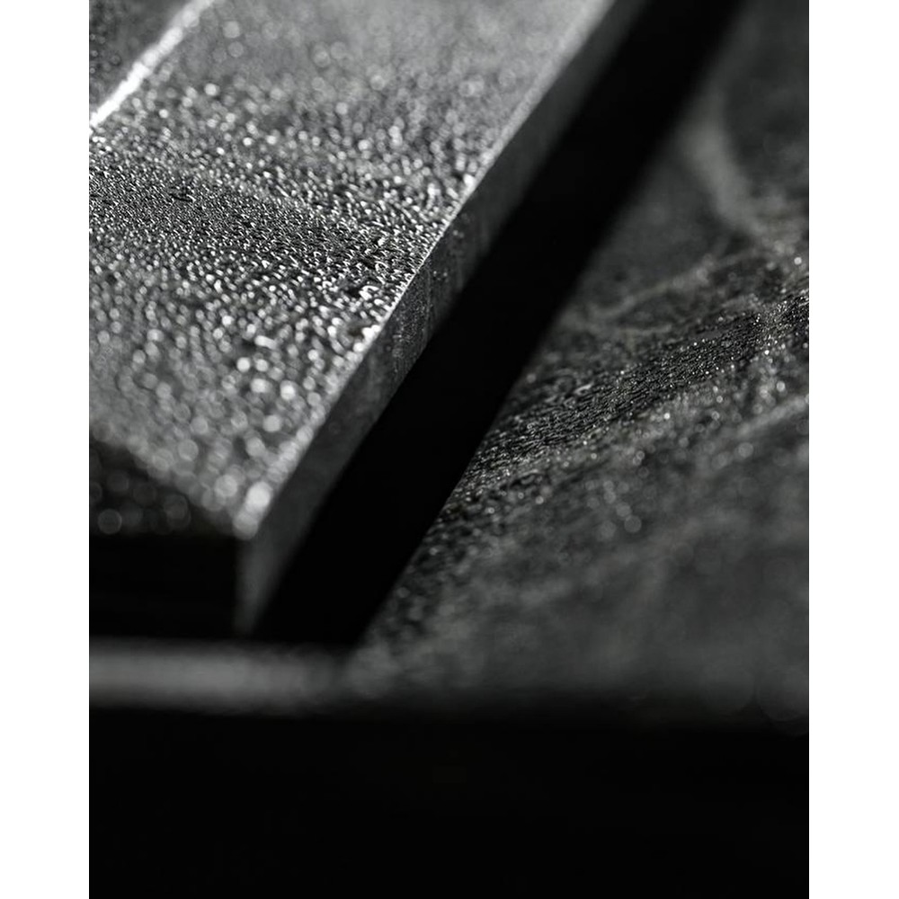 Модель банной печи с увеличенной каменкой и повышенной производительностью Атмосфера XL, рассчитанная на парную объемом до 26 м. куб в облицовке полированными плитами из натурального камня Пироксенит Элит.