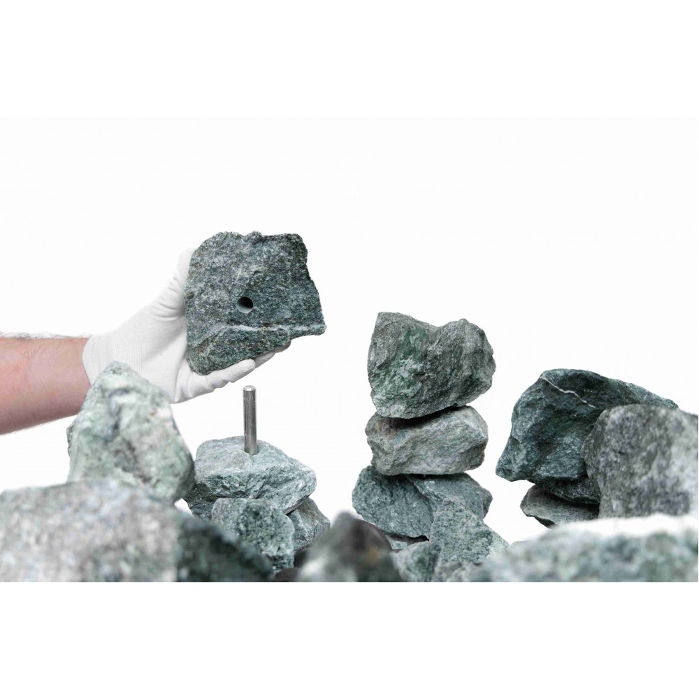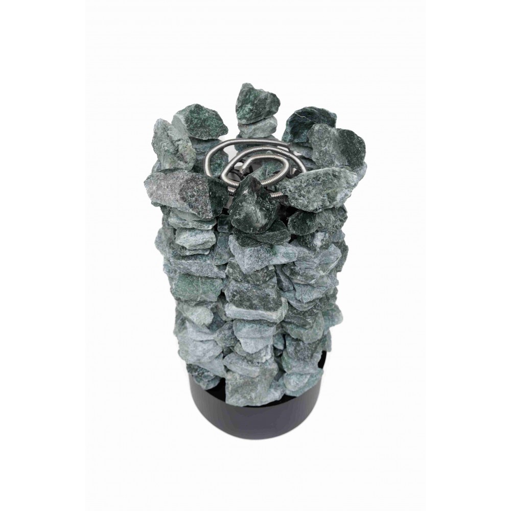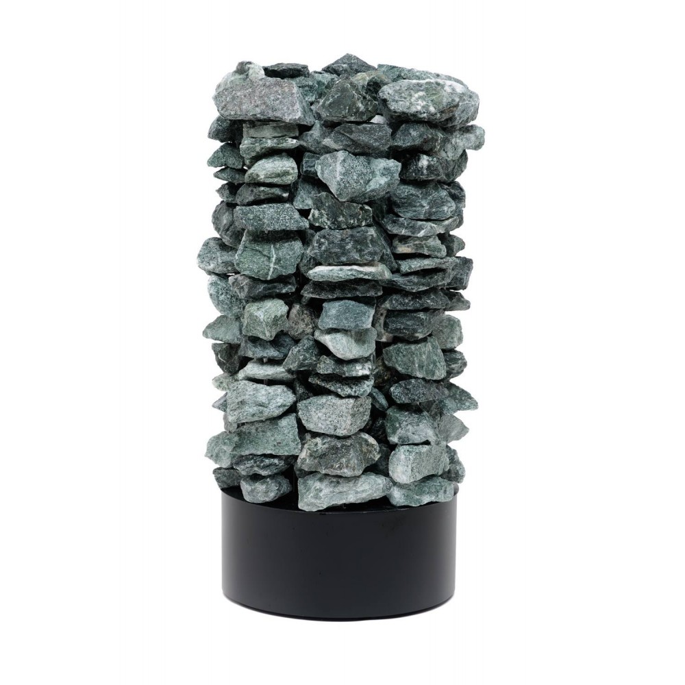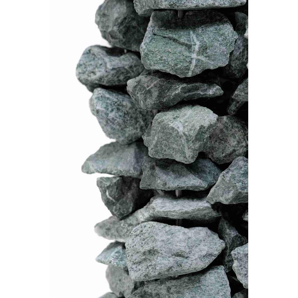 Увеличенная площадь испарения позволяет воде испаряться плавно и медленно, создавая густой и мягкий пар. Колотая структура камней и их шероховатая поверхность также усиливают парообразование.