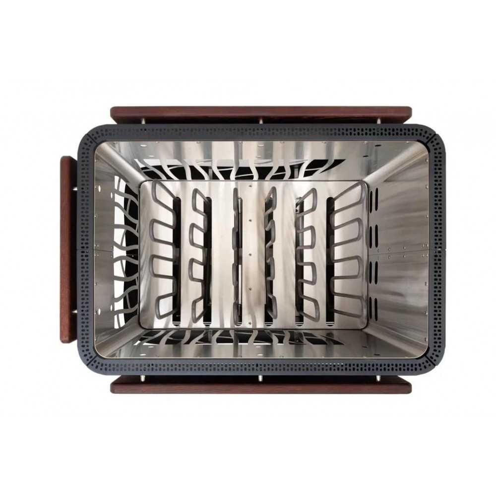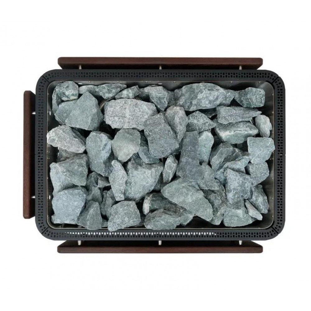 Вместимость до 100 кг камней позволяет создавать большое количество лучистого тепла и мелкодисперсного пара, идеально имитируя атмосферу настоящей русской бани.
