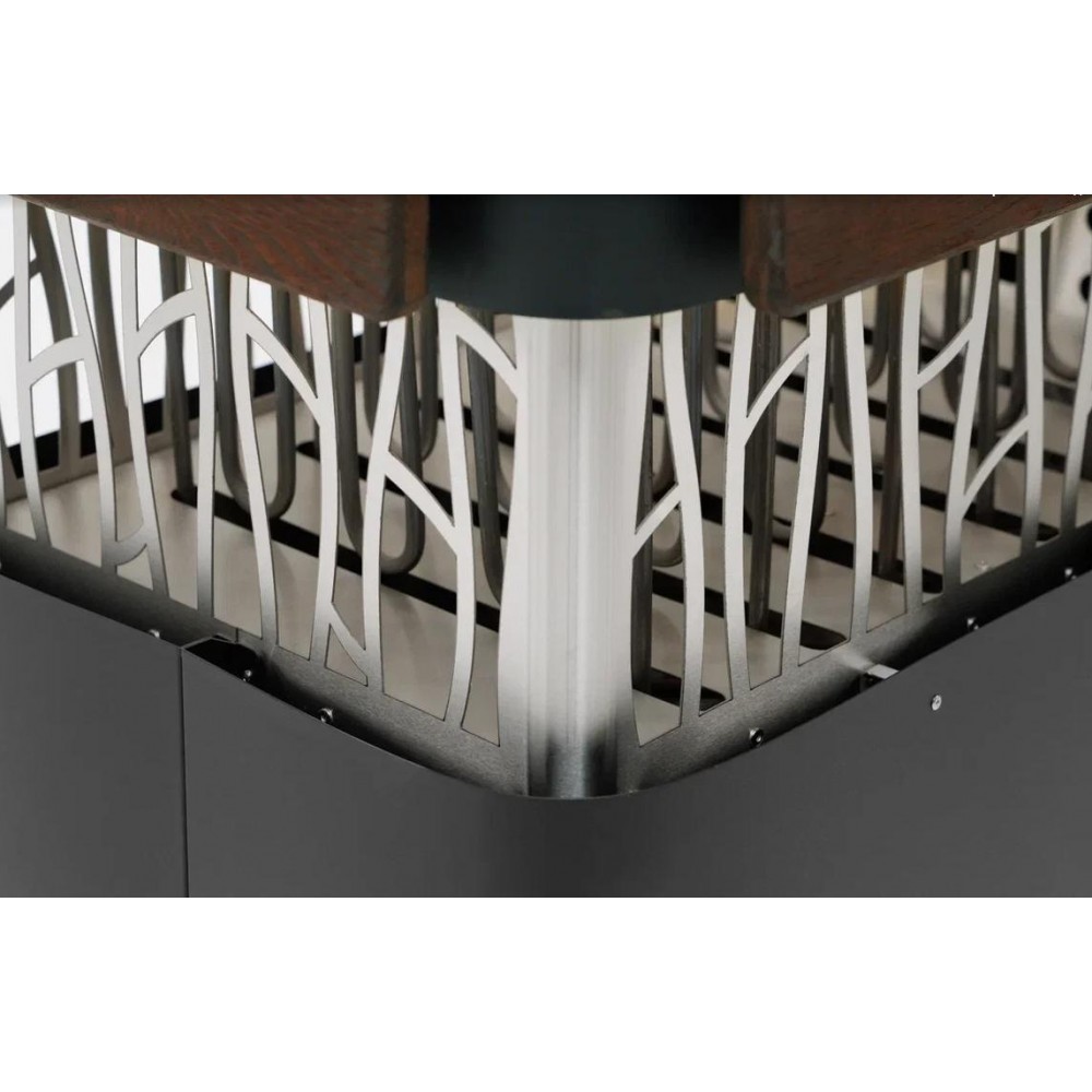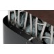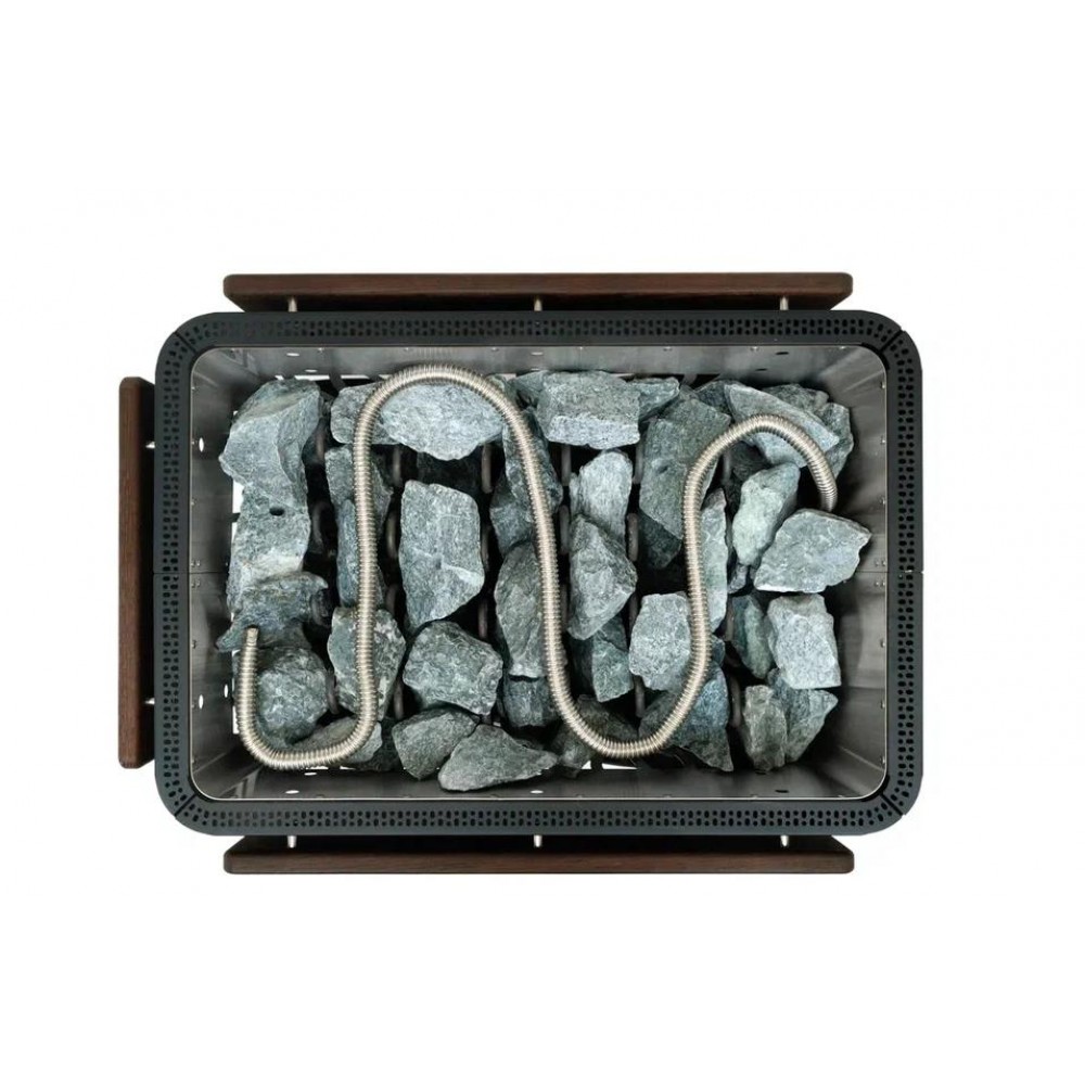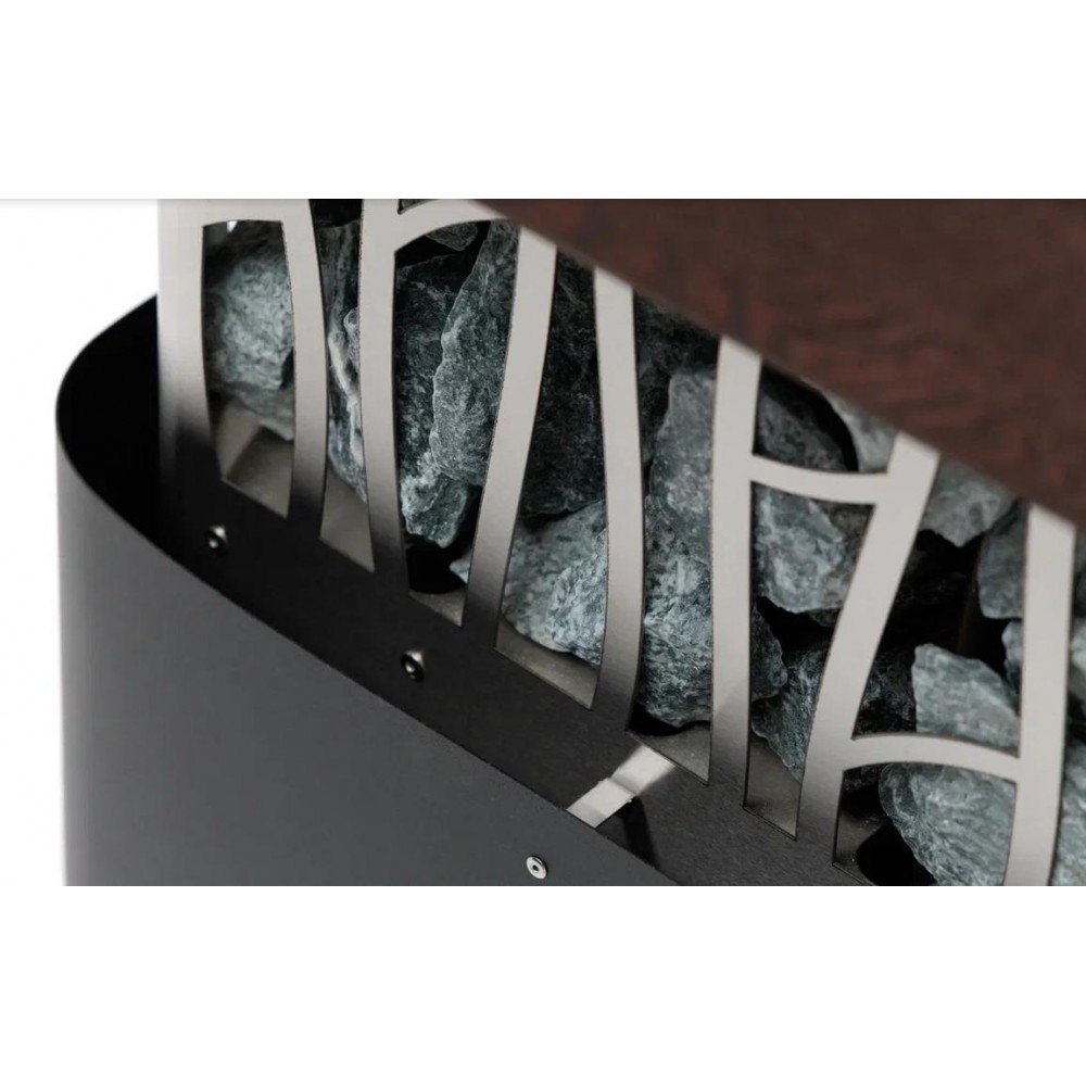 Двойной кожух создает вентилируемое пространство по периметру печи, благодаря чему каменка активно забирает холодный воздух и быстро его нагревает. 6 ТЭНов обеспечивают равномерный и быстрый нагрев с гарантированным сроком службы 5000 часов, а козырек защищает электрику от попадания воды.