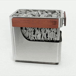 Двойной кожух создает вентилируемое пространство по периметру печи, благодаря чему каменка активно забирает холодный воздух и быстро его нагревает. 6 ТЭНов обеспечивают равномерный и быстрый нагрев с гарантированным сроком службы 5000 часов, а козырек защищает электрику от попадания воды.