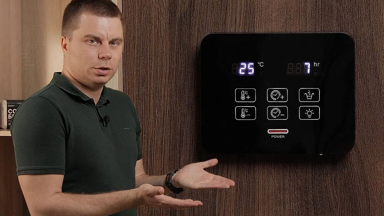 Пульт управления Born CP 18 представляет собой лаконичное и функциональное решение для управления электрическими каменками мощностью до 18 кВт. Этот современный прибор сочетает в себе простоту использования и богатый набор возможностей для комфортного управления вашей сауной. Всего в несколько касаний вы сможете настраивать желаемую температуру, а также управлять освещением.