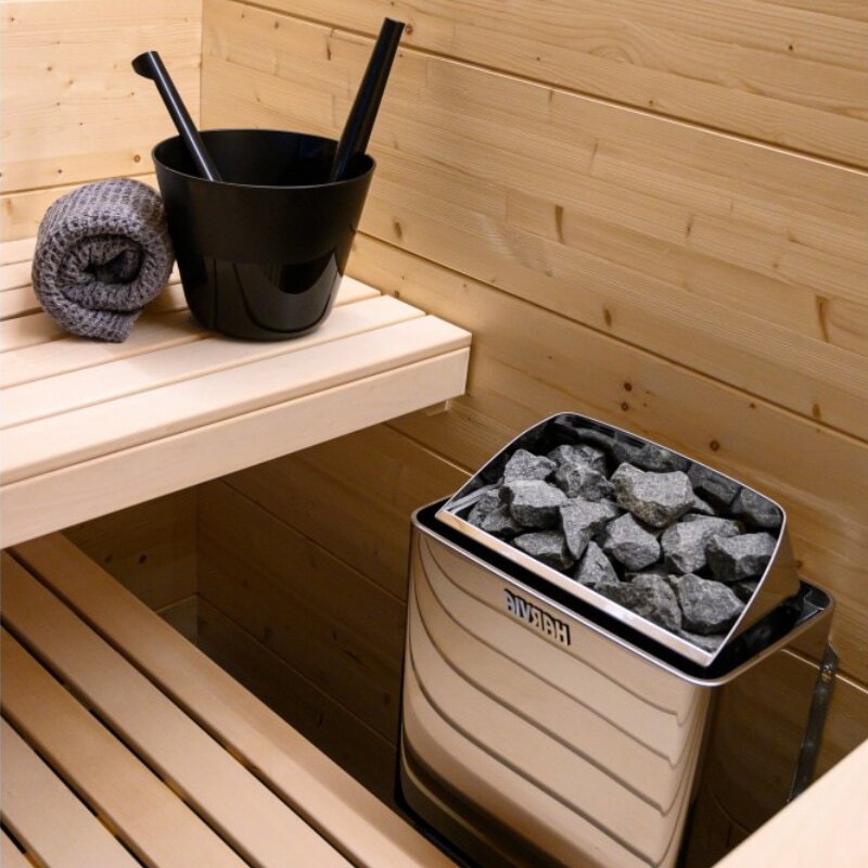 Конструкция каменки продумана до мелочей: прочный корпус из нержавеющей стали с низкотемпературным кожухом гарантирует безопасность эксплуатации. Модель KIP80E отличается гибкостью установки — выносной блок управления можно разместить в наиболее удобном месте, например, в предбаннике. Вместительный отсек для камней способствует равномерному теплообмену, а лаконичный дизайн в стальном исполнении органично вписывается в любой интерьер парной.