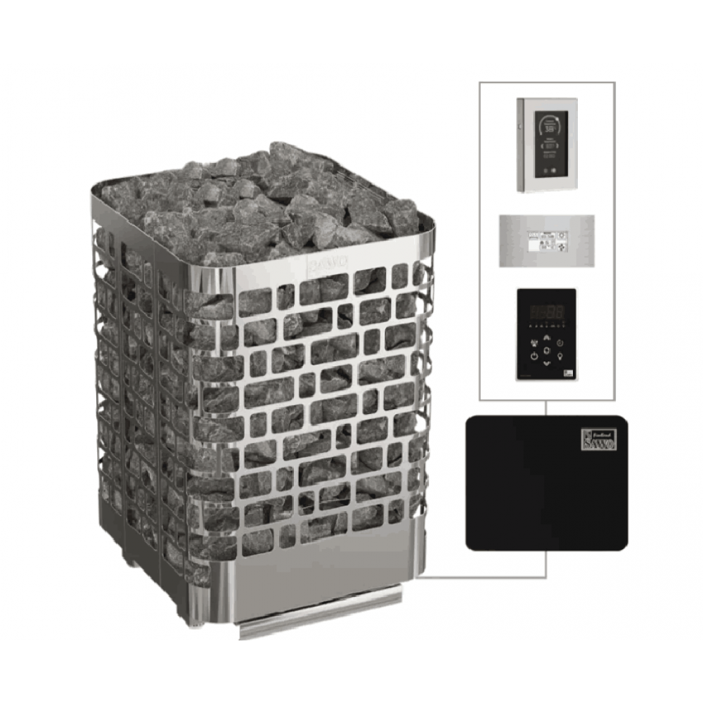 Управление данной моделью производится с помощью удобного выносного управления с интуитивно понятным интерфейсом. Он позволяет запрограммировать режим работы электрокаменки заранее, а также вносить необходимые корректировки непосредственно во время процедуры парения. Современная панель управления SAWO Innova 2.0 с цифровым дисплеем может быть встроена в стену или установлена с отдельной монтажной рамой.