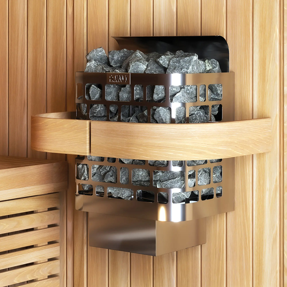 • вместительный резервуар модели позволяет использовать большое количество камней (до 60 кг), что способствует повышенному прогреванию парной и дает возможность получить более насыщенный пар.