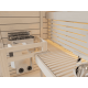 Дизайн и установка: Компактные размеры (высота 50 см, ширина 34 см, глубина 20 см) позволяют легко интегрировать печь в угол сауны. Она крепится на деревянную платформу, гармонично вписываясь в интерьер из натурального дерева.