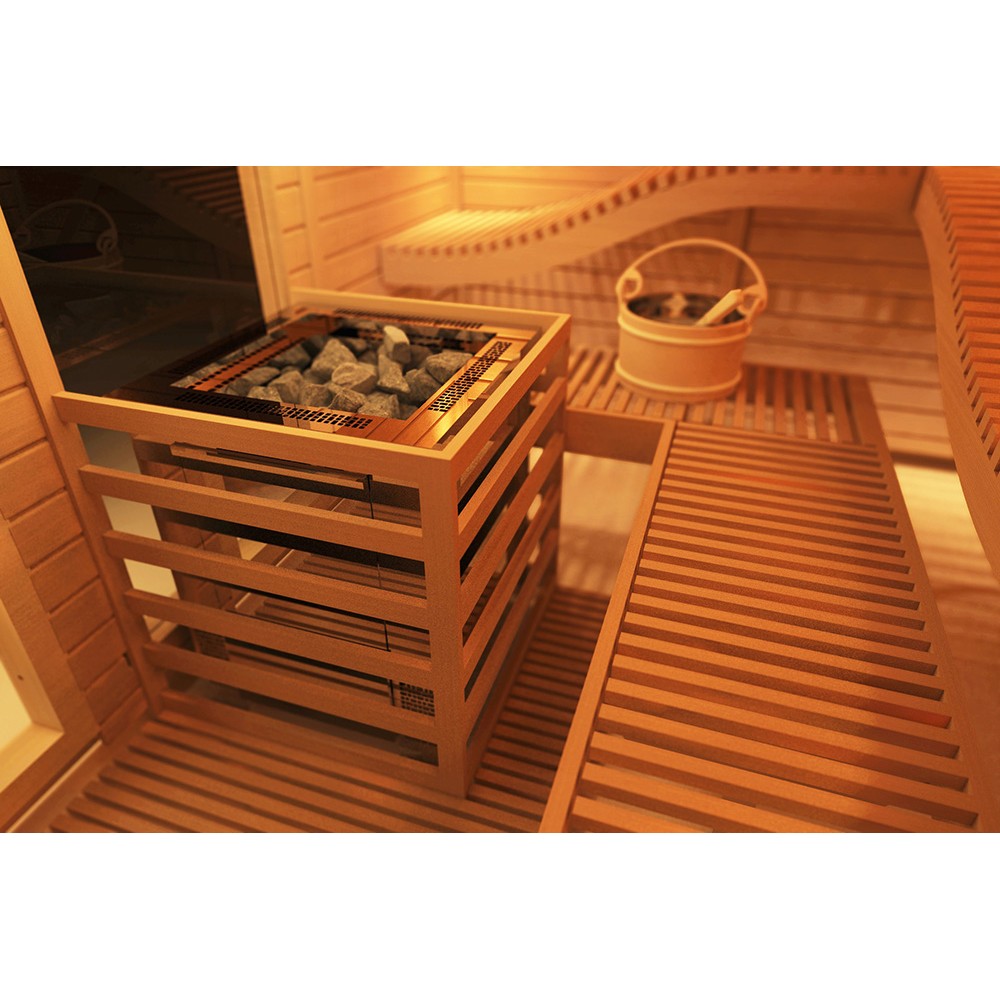 Эти новые печи для сауны нагреваются быстрее, уменьшает время ожидания. Усовершенствованная конструкция отсека для камней увеличивает срок эксплуатации нагревательных элементов будет длиться дольше, чем в обычных обогревателей. Несмотря на компактные габариты, печь вмещает в себя от 45 до 100 килограмм камней и обладает достаточно высокой мощность для качественного прогрева помещения.