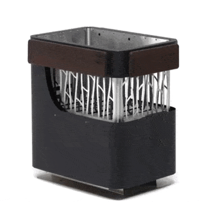 Корпус с двойной стенкой. Комбинированные стенки корпуса выполнены в виде решетки из нержавеющей стали AISI 304, за которой видны камни и декоративные накладки из термоясеня. Опционально можно установить систему подачи пара для создания мелкодисперсного, не обжигающего пара, осуществляя терапевтический эффект.
