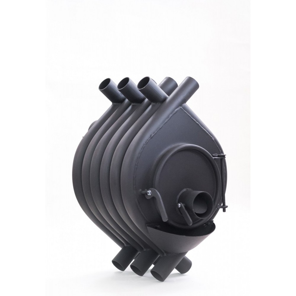 Печь имеет простую, высокоэффективную и надежную в эксплуатации цельносварную конструкцию. За счет использования сплошного ряда теплообменных труб в боковых стенках увеличена поверхность теплоотдачи и решена проблема интенсивного инфракрасного излучения при номинальной мощности эксплуатации печи. Холодный воздух, из отапливаемого помещения, за счет конвекции поступает в нижние отверстия теплообменных труб, а через верхние возвращается в помещение нагретым до температуры от 60 до 80 градусов.