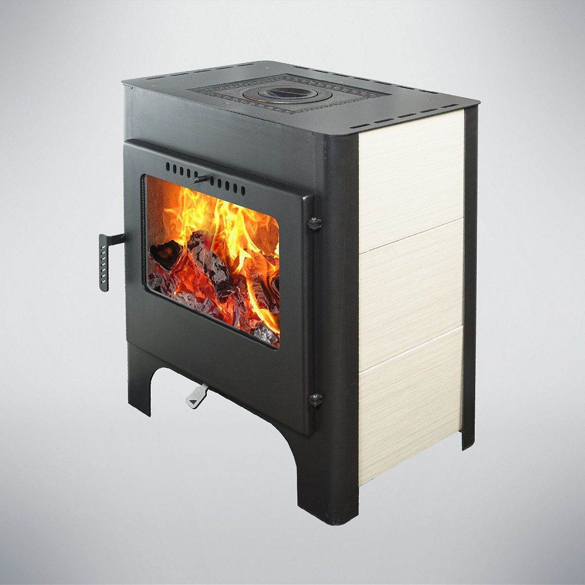 У печи-камина Гармония 1805 топочная камера с двойными стенками. Такая конструкция снижает температурную нагрузку на корпус и продлевает срок службы печи-камина. Самый мощный тепловой «удар» принимает на себя вермикулит внутри топки. Материал устойчив к высоким температурам и разрушительному воздействию остаточных продуктов горения. В случае выхода из строя внутренние стенки можно заменить.