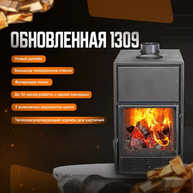 Печь-камин Варвара Гармония 1309 Черный станет украшением вашего дома или дачи благодаря современному и эффектному дизайну. Печь камин с варочной плитой Гармония 1309 является дровяным камином аккумуляторного типа. Это подразумевает собой то, что при прекращении горения внутри печи – тепло еще продолжительное время сохранятся в ней и плавно отдается в помещение. Во внешней части печи, вдоль дымового канала под верхней крышкой, находятся специальные карманы, в которые помещается 16 печных кирпичей. Эти карманы специально сконструированы вдоль конвекционных каналов, чтобы циркуляция воздуха была постоянной.
