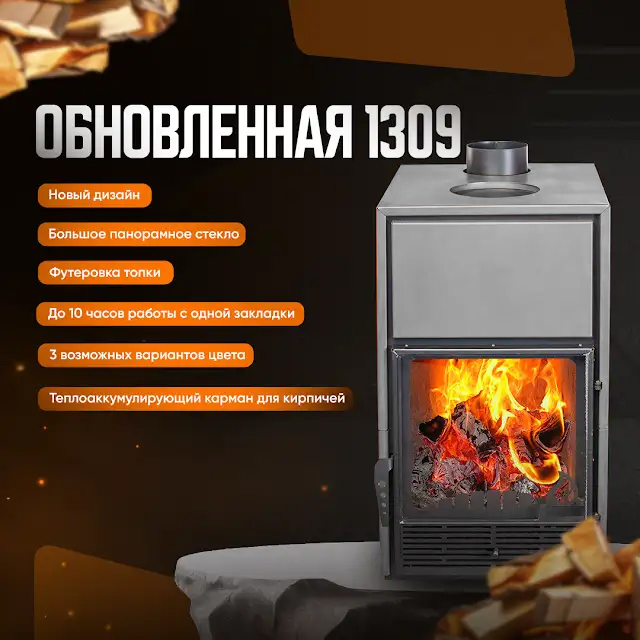 Печь-камин Гармония 1309 способна обогреть помещение объемом до 200 куб.м. Камин выполнен из стали толщиной 4 мм, что обеспечивает безаварийную эксплуатацию в течении длительного периода использования.